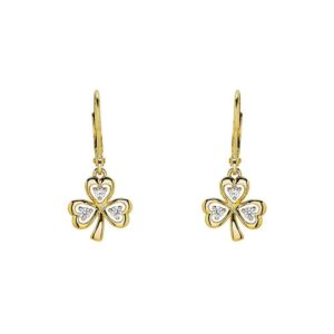 Shanore’s Gold Vermeil Mother of Pearl Claddagh Earrings celebrate deep connections. The circular drop stands for eternal bonds. The Claddagh symbol of two hands holding a crown signifies love, loyalty, and friendship. Mother of pearl lends an aura of security. White Cubic Zirconia add a shimmer of happiness. Lastly, yellow gold envelopes them all in warmth. These earrings are the best gift for any woman you feel deeply connected to.