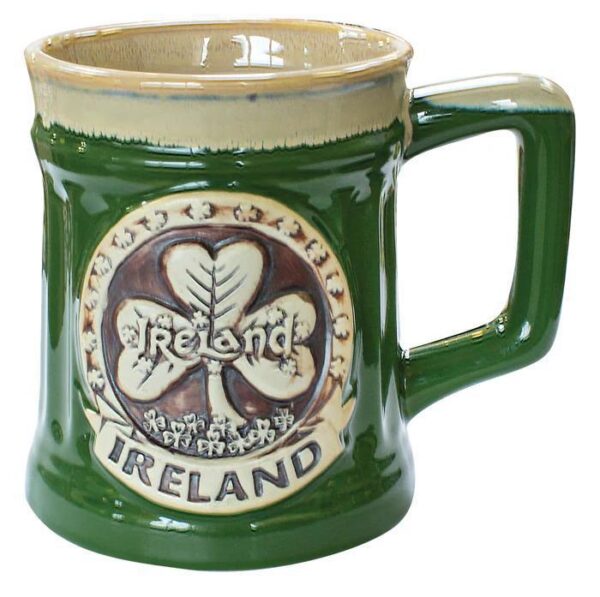 This Irish Shamrock Pottery Mug is the perfect way to display your love for your Irish heritage. Made of durable green ceramic, it features a large handle for easy gripping and a classic shamrock design. With an Ireland engraving underneath, it’s a great gift for any coffee or tea lover in your life!